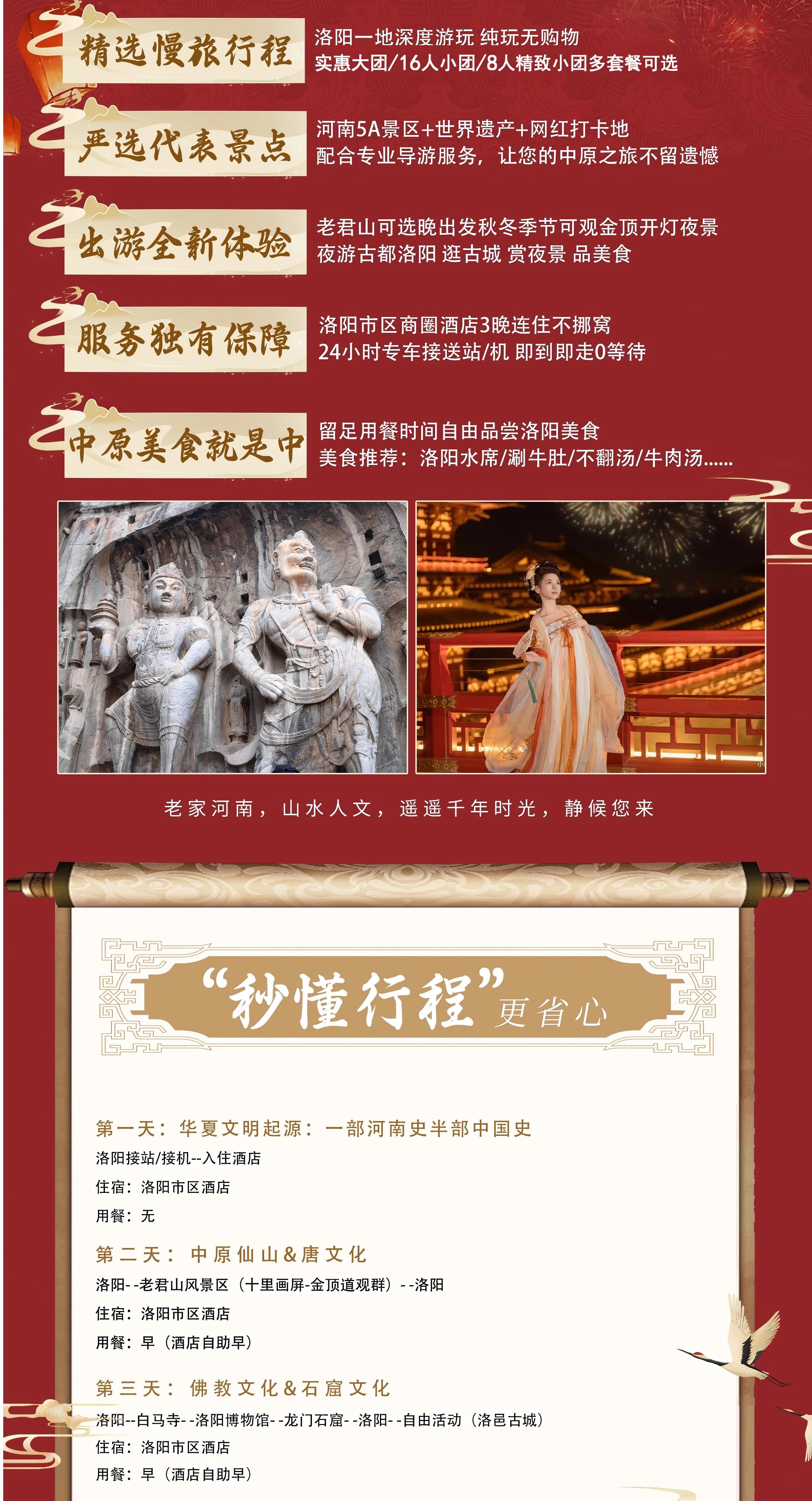 洛阳地接社_洛阳地接跟团游线路_洛阳老君山+龙门石窟+白马寺+洛阳博物馆4天3晚跟团游_河南地接线路4日游_郑州旅行社地接产品跟团游